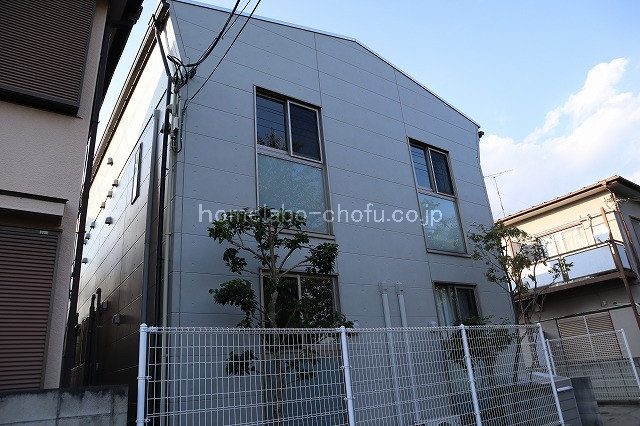 オシャレなデザイナーズアパート! コンクリート打ちっぱなし風のサイディングで目を引く建物ですね。 また目の前は広場になっているので非常に開放感がある環境です。 あと徒歩1分のところに調布市のスポーツ施設もありました♪